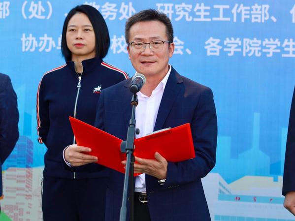 胡艳军在开幕辞中首先对本届体育文化节的顺利开幕表示热烈祝贺,并向为筹备活动辛勤付出的师生员工表示感谢,向全体裁判员、运动员致以敬意。他强调,体育事业关乎民族未来与人民幸福,是中华民族伟大复兴的重要组成部分。他向广大师生提出三点期望:一是要弘扬团结协作、顽强拼搏的体育精神,将运动激情融入人生奋斗;二是要展现昂扬向上、自尊自信的竞技风貌,赛出风格、赛出水平、赛出友谊;三是要共同维护公平公正、和谐有序的竞赛环境,确保文化节顺利、安全、精彩举行。他号召全体师生将体育精神融入日常,把本届文化节办成一场文明、热烈、精彩、圆满的校园盛事。